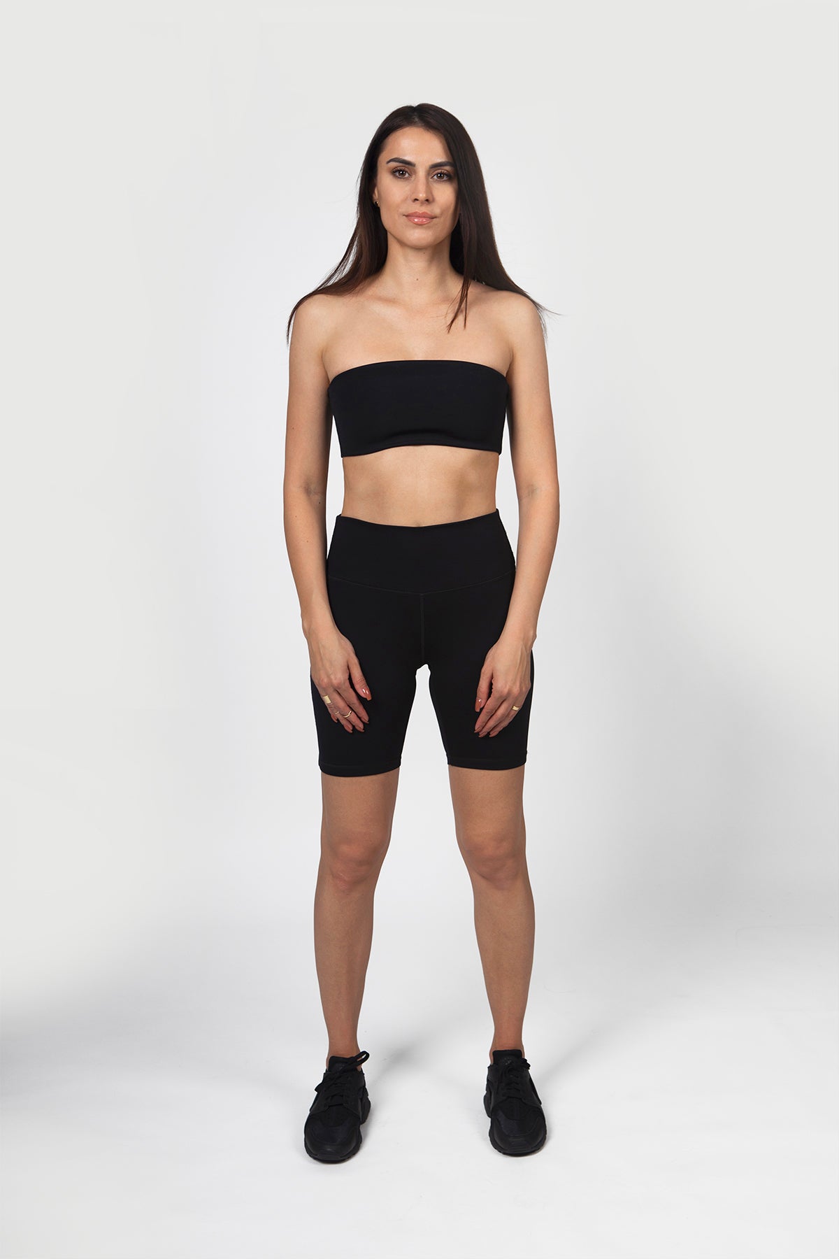 Supportive minimum coverage bandeau top made of stretchy recycled fabric. Super soft, double layered, heavy weight fabric. Instant essential piece perfect for your stylish or gym outfit. Compatible with other pieces from our collection.